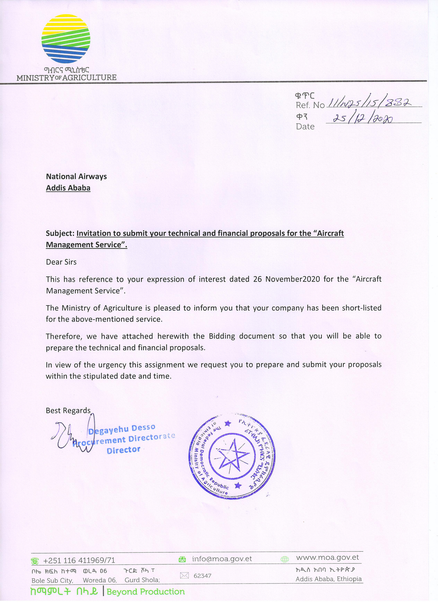 መሠረት ሚድያ በዚህ ዙርያ የግብርና ሚኒስቴርን የግዢ ዳይሬክቶሬት ዳይሬክተር እና የውል ሰነዶቹ ላይ የፈረሙትን አቶ ደጋየሁ ደሶን ለማናገር ሙከራ አድርጎ ነበር።