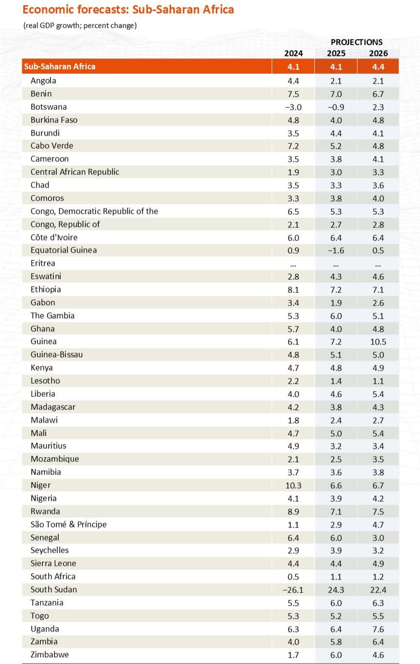 የተቋሙ ከሰሀራ በታች ያሉ ሀገራት የእድገት ምጣኔ ይፋ የሆነ ሲሆን የኢትዮጵያ ኢኮኖሚ በያዝነው የፈረንጆቹ አመት (2025) ከአምናው በርካታ ነጥቦችን ቢጥልም ዘንድሮ ከአፍሪካ ሁለተኛ ፈጣን እድገት እንደሚያሳይ ጠቁሟል።