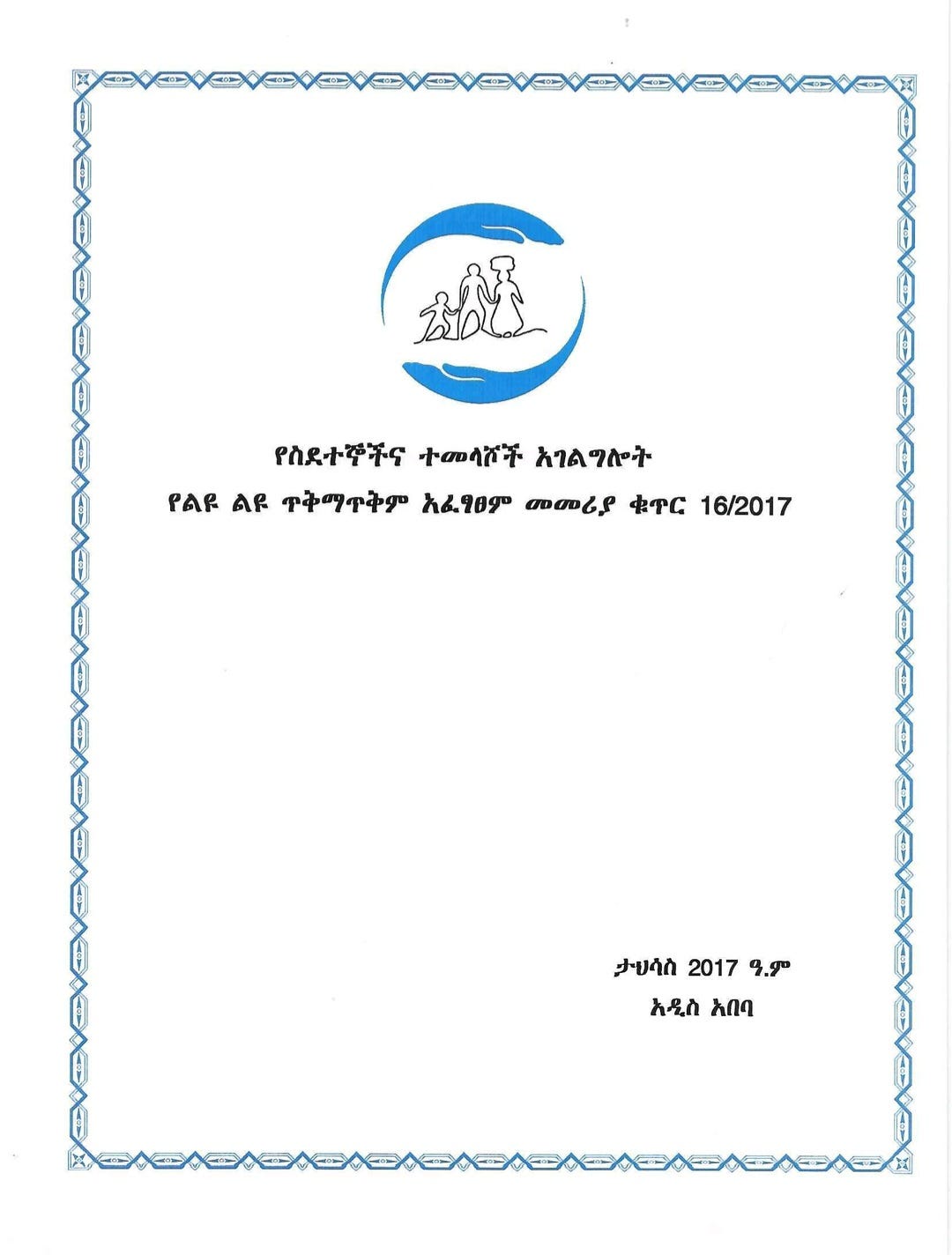 መሠረት ሚድያ የተመለከተው “የስደተኞችና ተመላሾች አገልግሎት ልዩ ልዩ ጥቅማጥቅሞች አፈጻፀም መመሪያ ቁጥር 16/2017” የጸደቀዉ ታህሳስ 2017 ዓ.ም ነበር። ታድያ ይህ ሰነድ ኢትዮጵያ ዉስጥ የፌደራል መንግስት ተቋም ሆኖ በዶላር ጥቅማ ጥቅም በመመሪያ አጽድቆ ክፍያ እንደሚፈፅም ያሳያል።