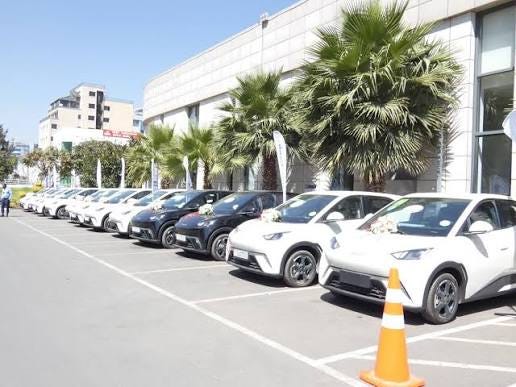 ፊንቴክ ኢንቨስትመንት 200 ቢዋይዲ ሲገልና 58 ኢቱ በድምሩ 258 የኤለክትሪክ መኪኖችን ለማሰረከብ ከጅቡቲ ወደ ገላንና ቃልቲ ለማጓጓዝ ዝግጅት መጠናቀቁን የድርጅቱ የስራ ኃላፊዎች ከቀናት በፊት በስካይላት ገልፀው ነበር።