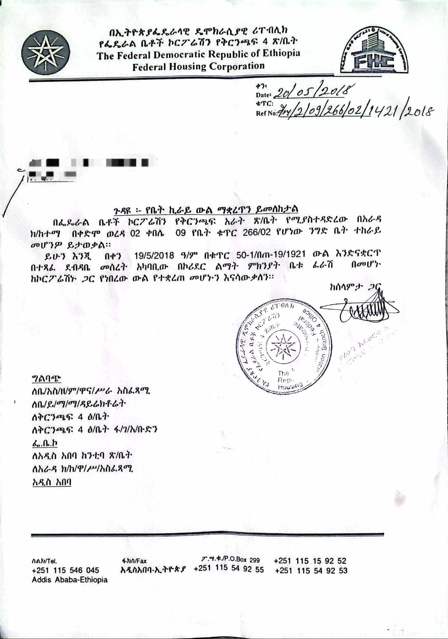 ይሁንና የፌደራል ቤቶች ኮርፖሬሽን አሁን ላይ ህንፃውን ተከራይተው ለሚገኙ ድርጅቶች የኪራይ ውል ማቋረጥ ደብዳቤ ጥር 20/2018 ዓ.ም መስጠቱን ሚድያችን የደረሰው ማስረጃ ያሳያል፣ ምክንያቱ ደግሞ በኮሪደር ልማት ምክንያት ይፈርሳል የሚል ነው።