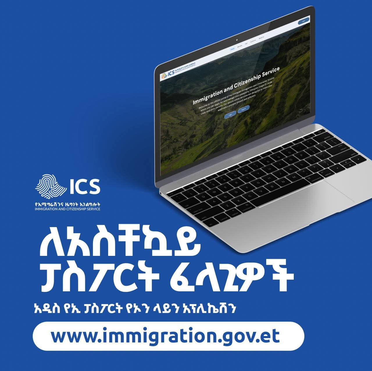 የኢሚግሬሽንና ዜግነት አገልግሎት ከዚህ በፊት ሲጠቀምበት ከነበረው የኦን ላይን አፕሊኬሽን በተጨማሪ አዲሱን የኢ ፓስፖርት የኦን ላይን አፕሊኬሽን በመጠቀም ህዝቡ ማመልከት እንደሚችል ከዛሬ ጀምሮ ማሳወቅ ጀምሯል።